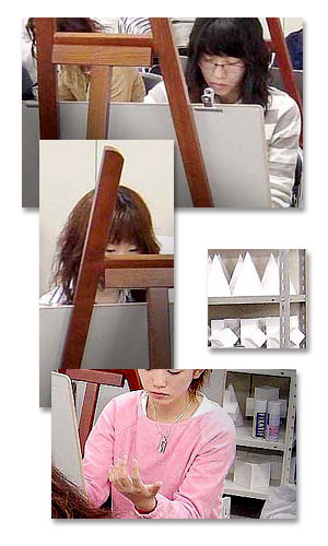 高校受験コースと大学・短大受験コースともに基礎デッサンを重点的に指導します。また、志望校の受験内容に従って制作アドバイスします。講座は基本的に毎週1回ですが、フリータイム制を採用していますので、休日や夏期・冬期などはアトリエを開放、自主的に制作できます。